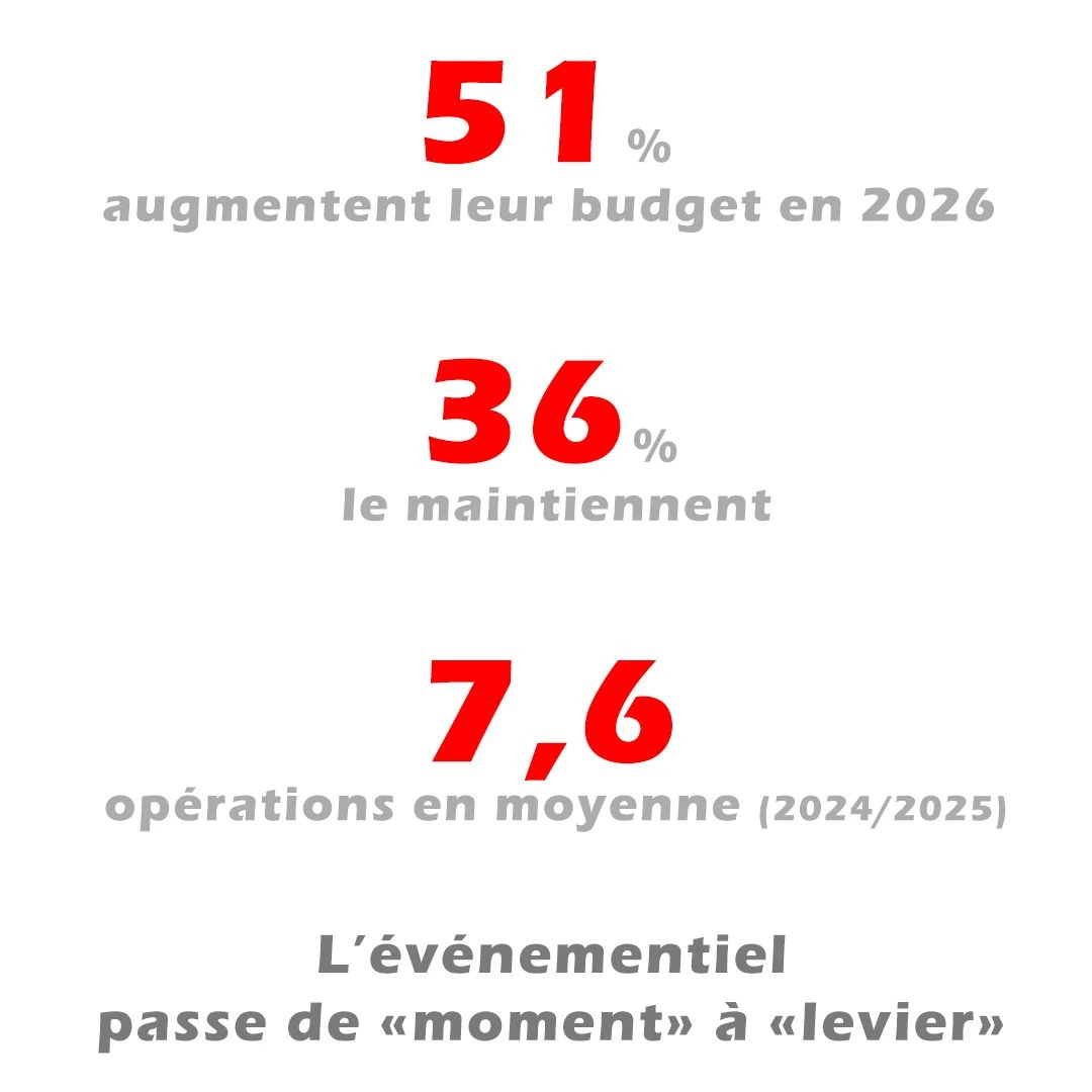 - ๐โ๐ฎ๐ฌ๐๐ ๐ ๐๐ฌ๐ญ ๐ฆ๐๐ฌ๐ฌ๐ข๐ : prรจs de 9 sur 10 ont investi dans au moins une opรฉration รฉvรฉnementielle sur les deux derniรจres annรฉes, avec 7,6 opรฉrations en moyenne en 2024/2025.